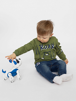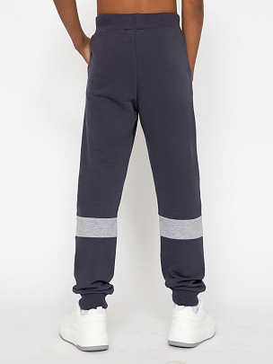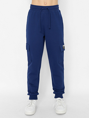 Брюки с притачным поясом и манжетами. В пояс вставлена резинка и функциональный шнур. Пояс и манжеты выполнены из полотна с эластаном. На боковых швах расположены накладные карманы с клапаном. Карман декорирован вязаной нашивкой.
