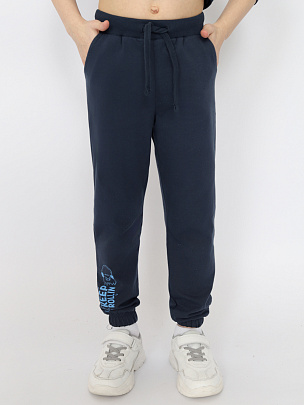 Брюки для мальчика с накладными карманами с клапаном. Нижние срезы брюк оформлены притачными манжетами из полотна с эластаном. Пояс притачной, с резинкой и функциональным шнуром. На карман настрочена декоративная жаккардовая этикетка.
