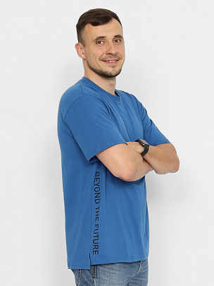 Футболка мужская свободного покроя с короткими втачными рукавами. Горловина круглая, обработана воротником из полотна с эластаном. Перед футболки декорирован принтом "ВОЗВЫШАТЬСЯ".