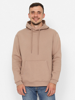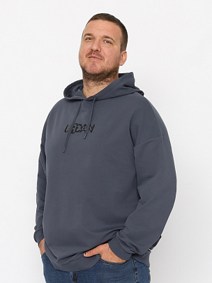 Толстовка мужская с капюшоном со шнурком, карман-кенгуру. Манжеты и пояс из эластичной рибаны. На рукаве декоративная силиконовая нашивка.