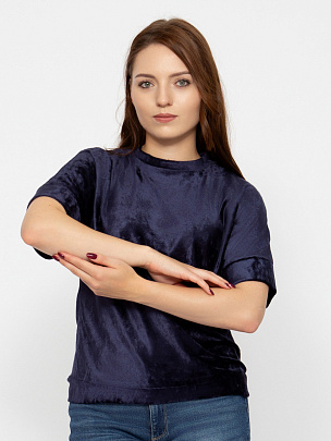 Эффектный джемпер из качественного эластичного велюра, с короткими цельнокроеными рукавами. Лаконичная свободная модель выделяется благодаря переливающемуся цвету ткани, который вносит в образ оригинальный штрих. Она будет идеально смотреться с юбками и джинсами.