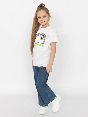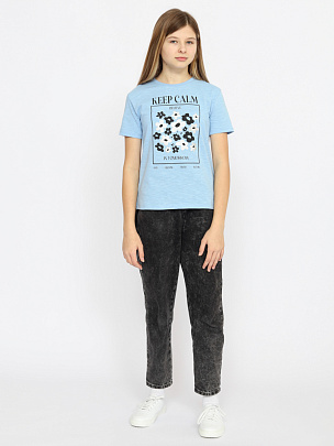 Футболка с коротким рукавом. Горловина круглая, обработана узким воротником из полотна с эластаном. Перед оформлен принтом.